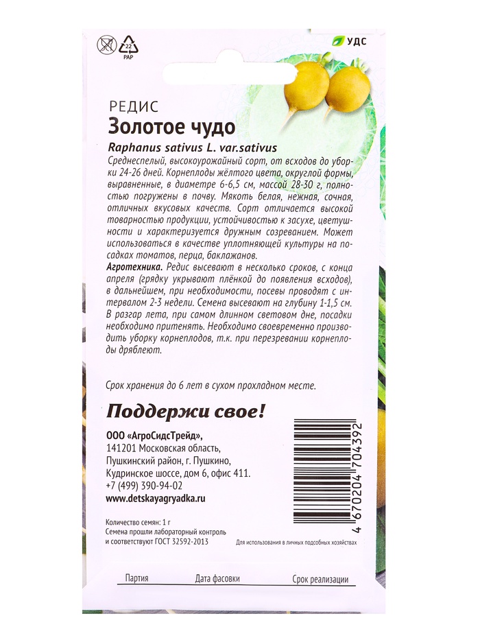 Семена Редис Золотое чудо 1 г