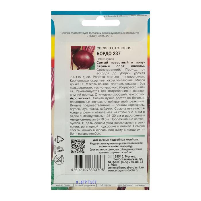 Семена Свекла "Бордо 237" ,2,5 гр