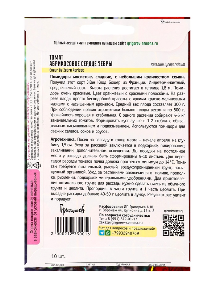 Семена Томат Абрикосовое Сердце Зебры (Coeur De Zebre Apricot) 10шт. 12.29 г.