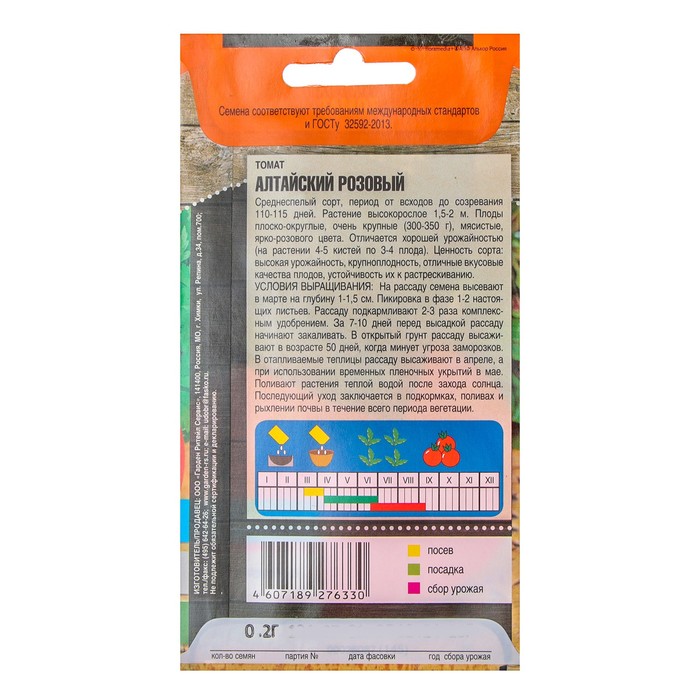 Семена Томат "Алтайский розовый", среднеспелый, 0,2 г