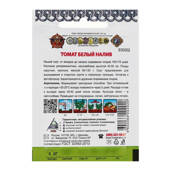 Семена Томат "Белый Налив 241", серия Кольчуга NEW, 0,2 г