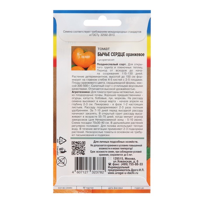 Семена Томат «Бычье сердце», оранжевое, «Урожай Удачи»