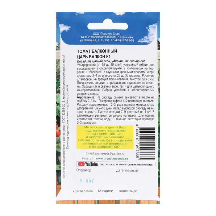 Семена Томат "Царь Балкон F1",детерминантный,низкорослый 0,05 г.