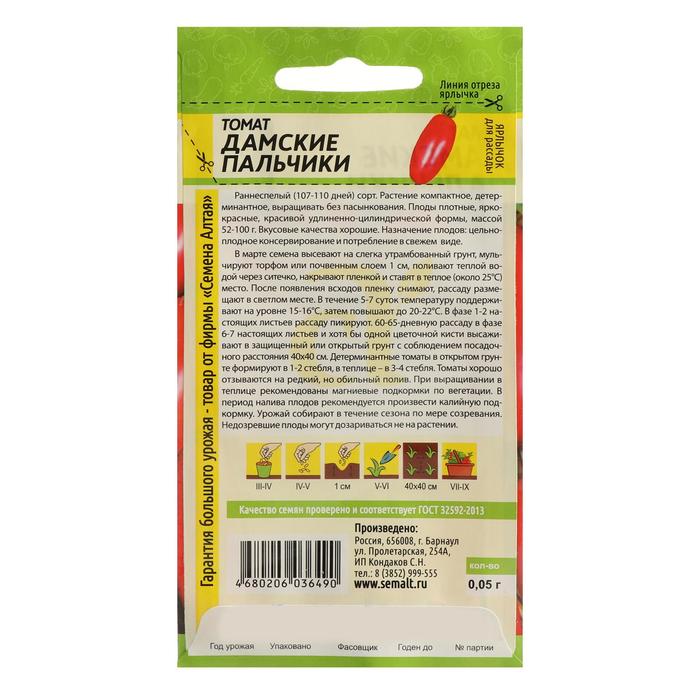 Семена томат «Дамские Пальчики», Семена Алтая, цветной пакет, 0.05 г