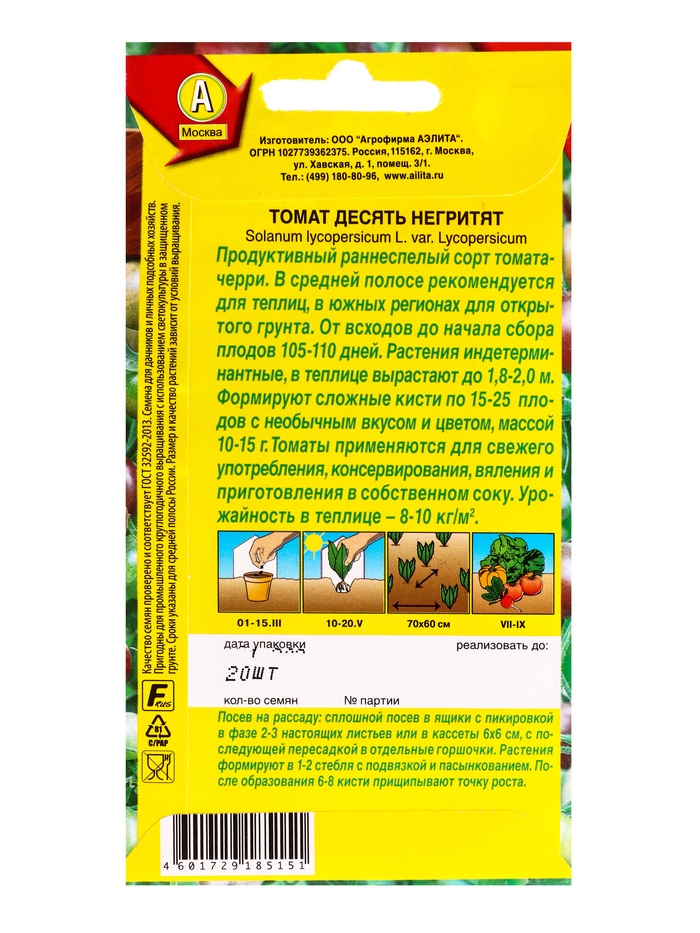 Семена Томат «Десять негритят», 20 шт., «Агрофирма АЭЛИТА»
