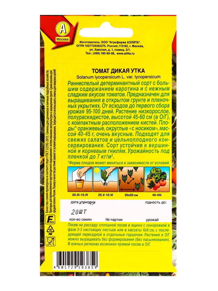 Семена Томат «Дикая утка», 20 шт., «Агрофирма АЭЛИТА»