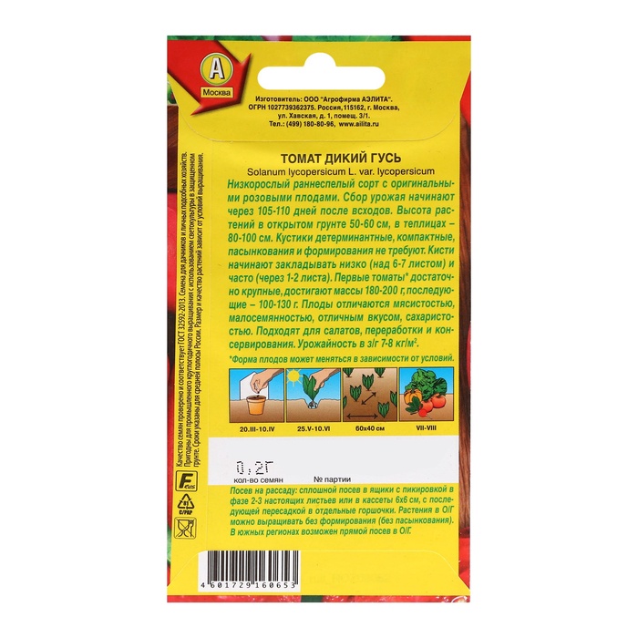 Семена Томат "Дикий гусь" ц/п, 0,2 г