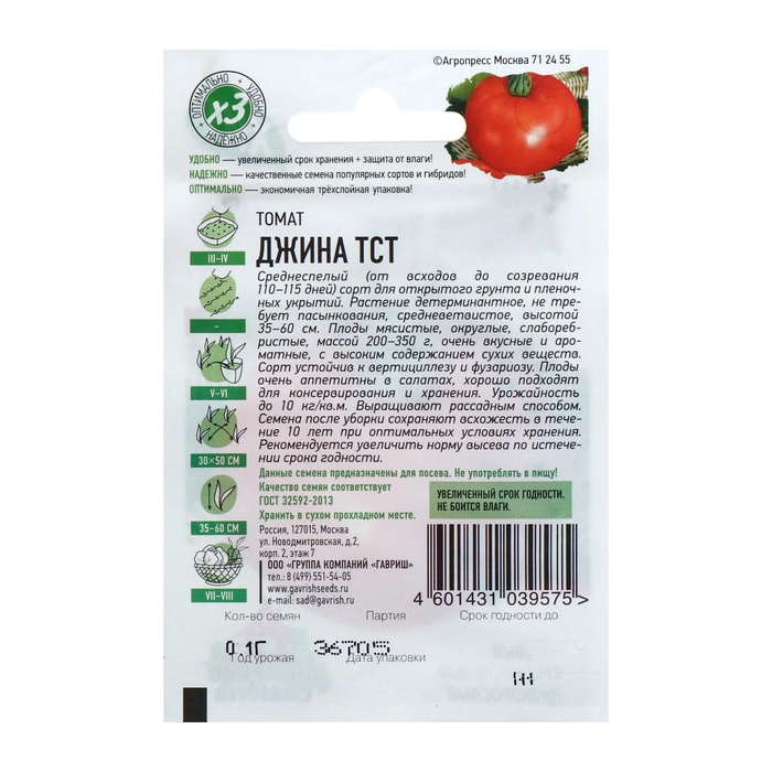 Семена Томат "Джина ТСТ", среднеспелый, 0,05 г серия ХИТ х3