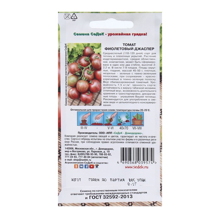 Семена Томат «Фиолетовый Джаспер», 0.1 г, «СеДеК»