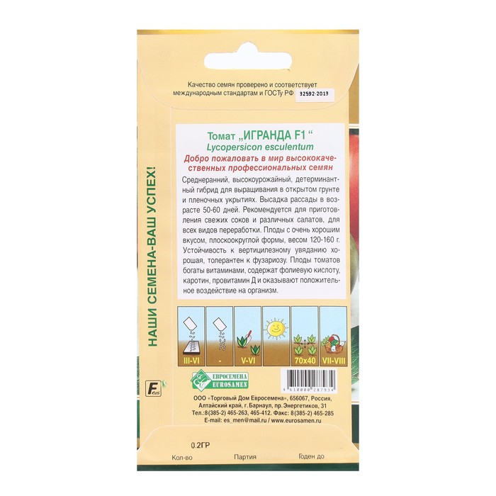 Семена Томат ИГРАНДА, 0,2гр