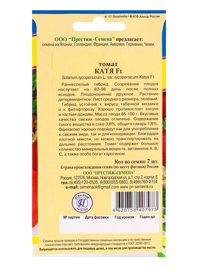 Семена Томат "Катя" F1, ультраранний,набор 5 шт