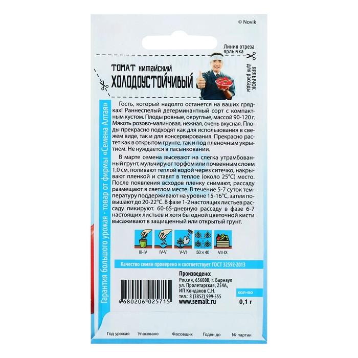Семена Томат "Китайский холодоустойчивый", раннеспелый, цп, 0,05 г