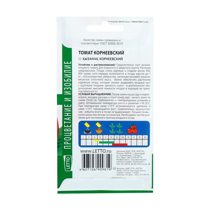 Семена Томат "Корнеевский", средний, розовый, высокорослый, 0,1 гр
