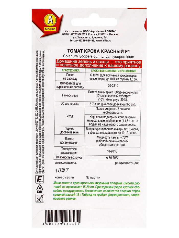Семена Томат «Кроха Красный», F1, «Зимний огород - АЭЛИТА», 10 шт.