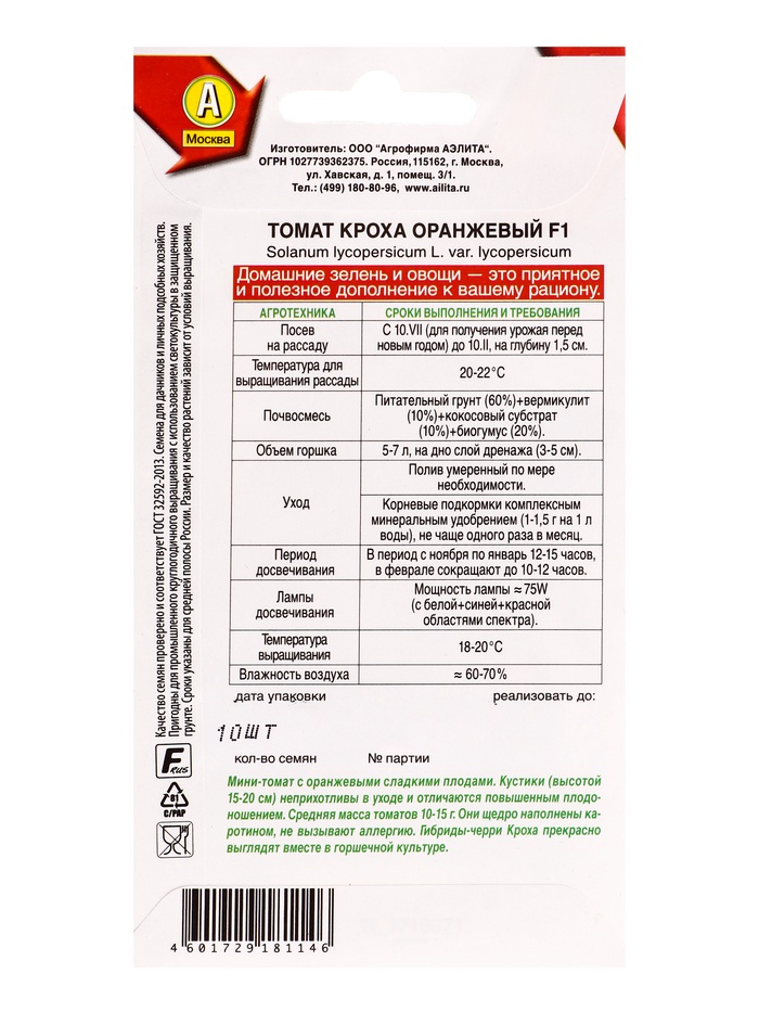 Семена Томат «Кроха Оранжевый», F1, «Зимний огород - АЭЛИТА», 10 шт.