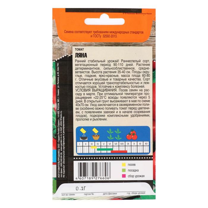 Семена Томат "Ляна" кустовой, раннеспелый, 0,1 г