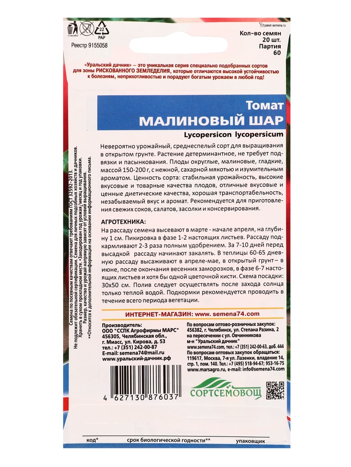 Семена Томат Малиновый шар (УД) Е/П , Е/П, 20 шт.