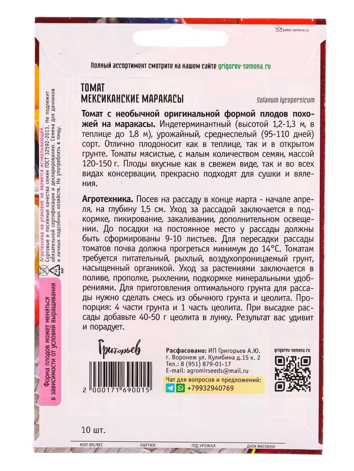 Семена Томат Мексиканские Маракасы 10 шт. 12.29 г.