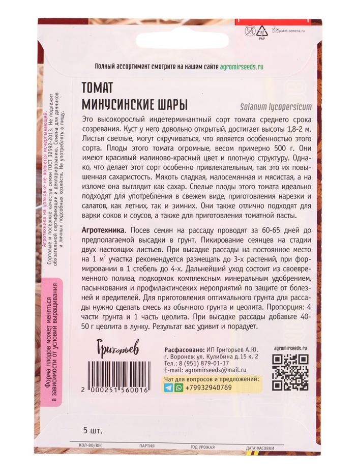 Семена Томат Минусинские Шары 5шт. 12.29 г.