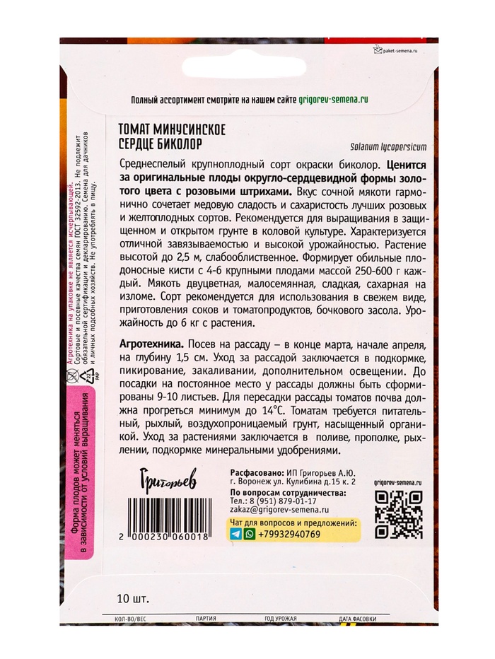 Семена Томат Минусинское Сердце Биколор 10шт. 12.29 г.