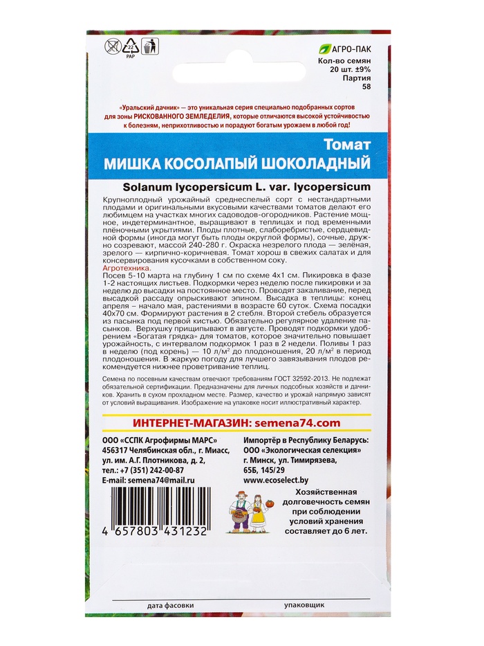 Семена Томат Мишка косолапый шоколадный (УД) Е/П , Е/П, 20 шт.