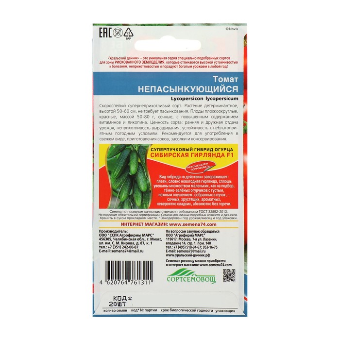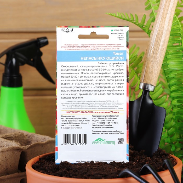 Семена Томат "Непасынкующийся" скороспелый, детерминантный,низкорослый, 20 шт.