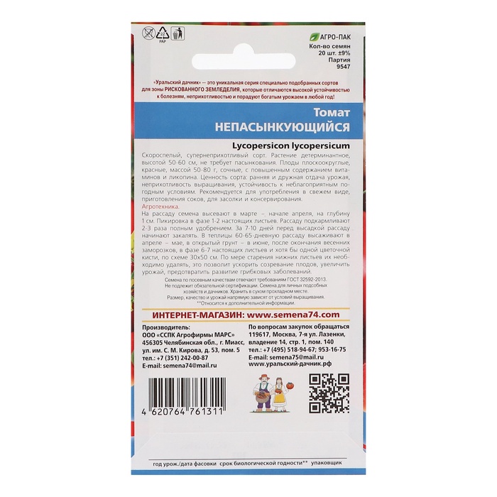 Семена Томат "Непасынкующийся" скороспелый, набор 5 шт
