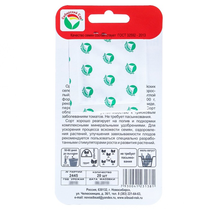 Семена Томат «Никола», раннеспелый, 20 шт., «Сибирский Сад»
