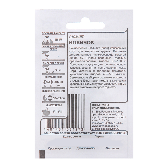 Семена Томат «Новичок», белый пакет, 0.05 г, «Гавриш»