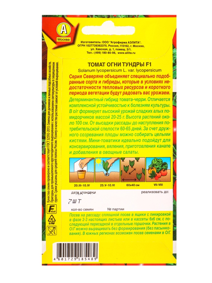 Семена Томат «Огни Тундры», F1, «Северяне - Агрофирма АЭЛИТА», 7 шт.