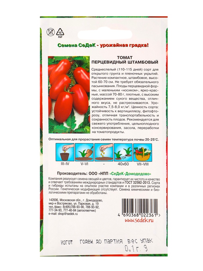 Семена томат «Перцевидный штамбовый», 0.1 г