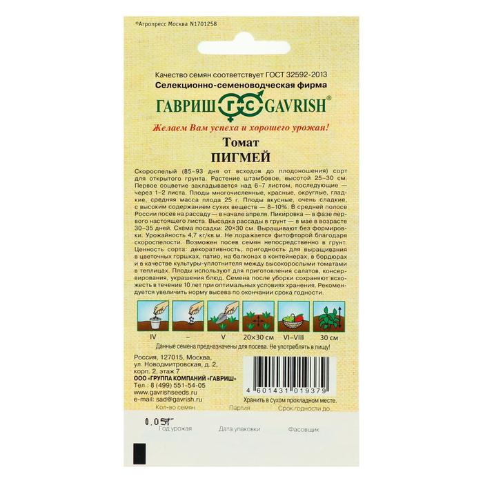 Семена Томат "Пигмей", комнатный, 0,05 г