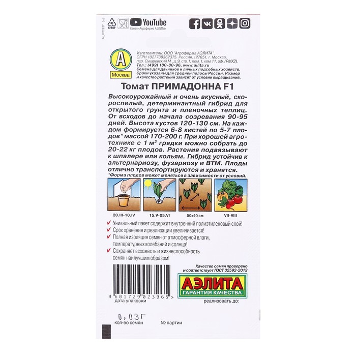 Семена Томат "Примадонна" F1, раннеспелый, 10 шт
