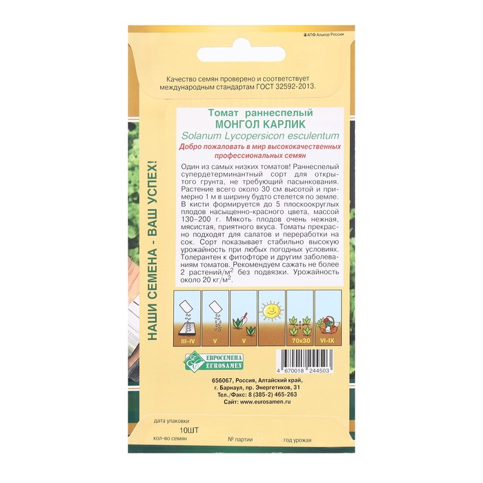 Семена томат раннеспелый «Монгол Карлик», супердетерминантный 10 шт.