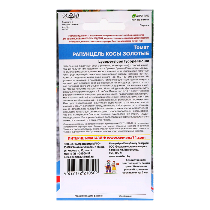 Семена Томат «Рапунцель косы золотые», 20 шт., «Уральский Дачник»