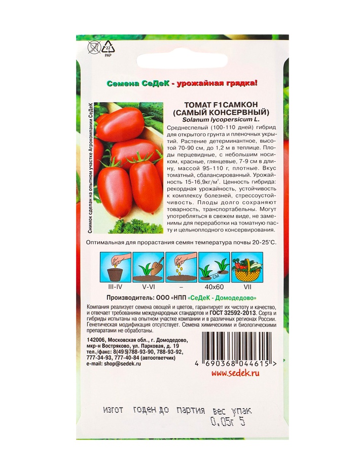 Семена Томат «Самкон» F1, индетерминантный, высокорослый, 0.05 г, «СеДеК»
