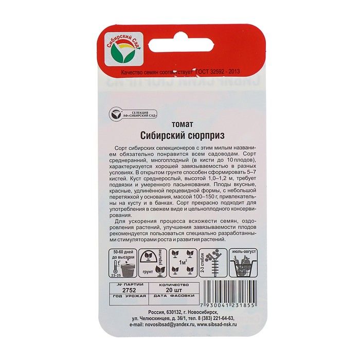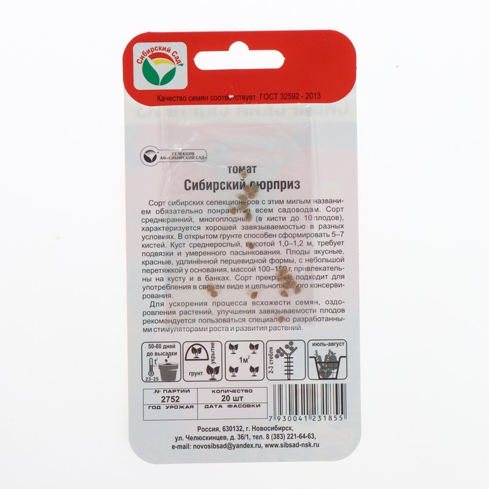 Семена Томат "Сибирский сюрприз", среднеранний, 20 шт