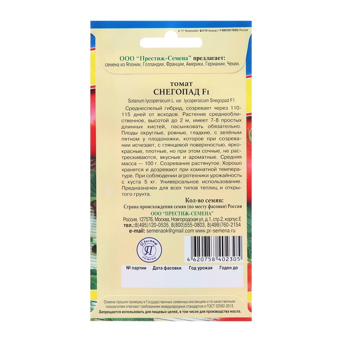 Семена Томат "Снегопад F1", ц/п, 10 шт.