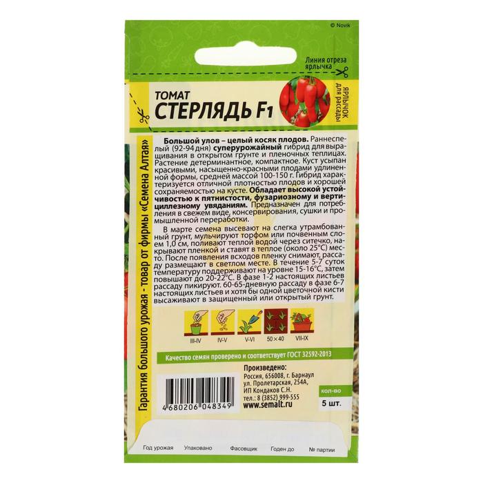 Семена Томат "Стерлядь", F1, детерминантный,низкорослый, 5 шт