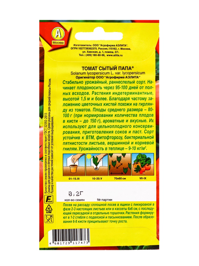 Семена Томат "Сытый папа" округлый, красный, раннеспелый,индетерминантный 0,2 г