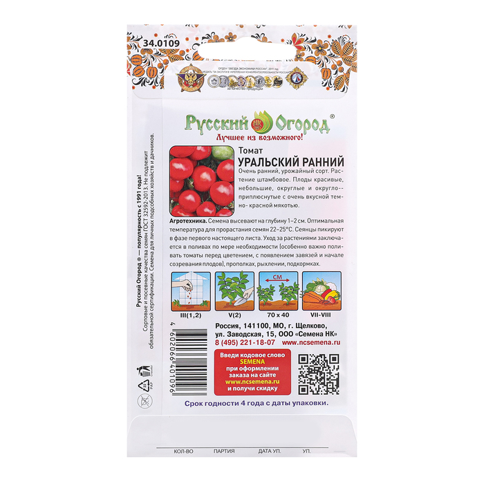 Семена Томат "Уральский ранний", ц/п, 0,1 г