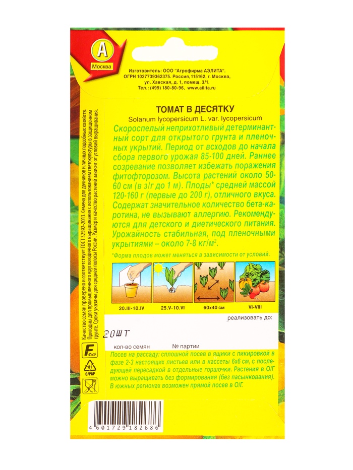 Семена Томат «В десятку», 20 шт., «Агрофирма АЭЛИТА»