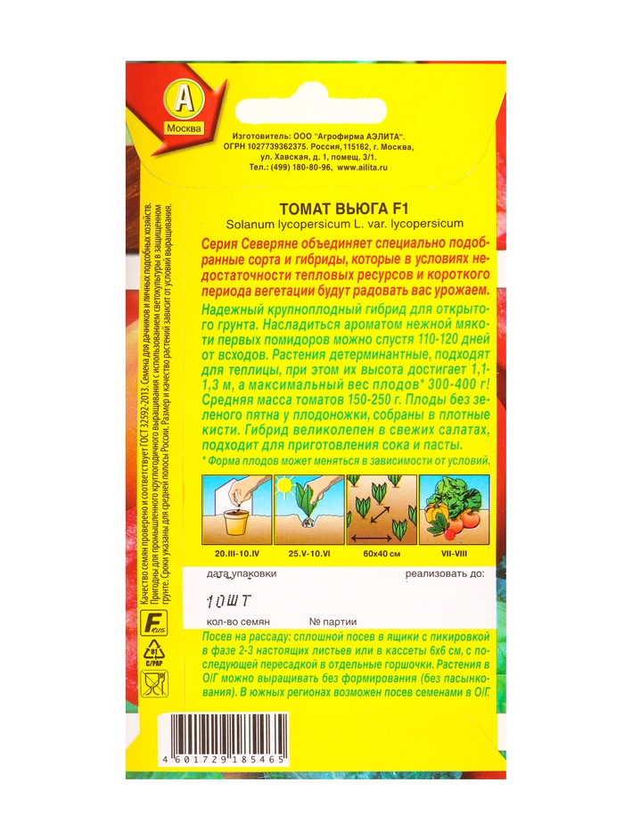 Семена Томат «Вьюга», F1, «Северяне - Агрофирма АЭЛИТА», 10 шт.