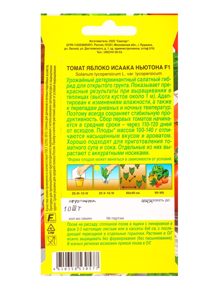 Семена Томат «Яблоко Исаака Ньютона», F1, «Семторг - Агрофирма АЭЛИТА», 10 шт.