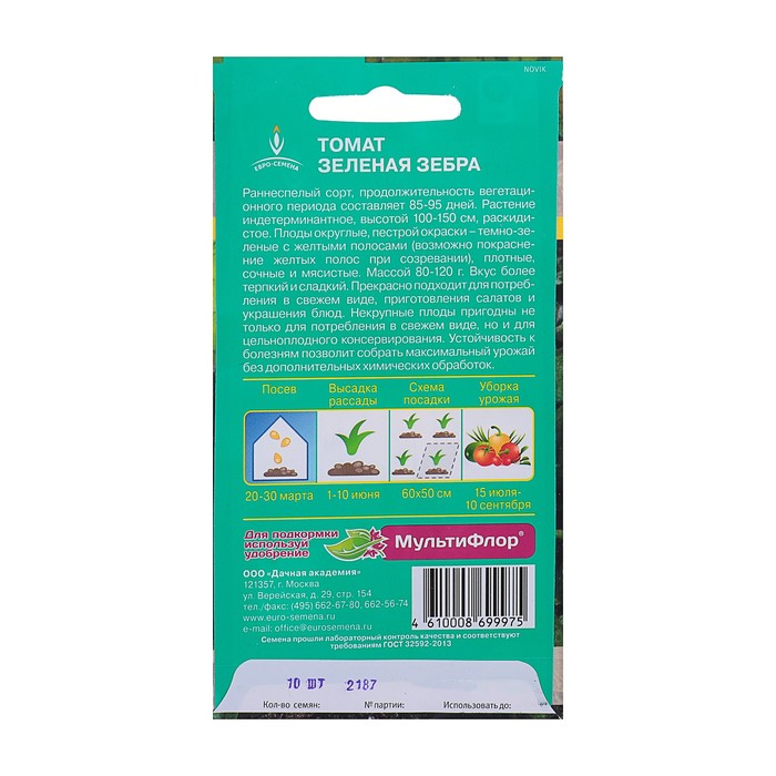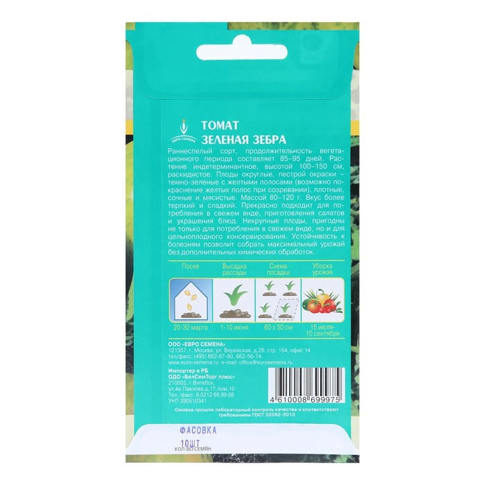 Семена Томат "Зеленая зебра" высокорослый, цв/п, 10 шт