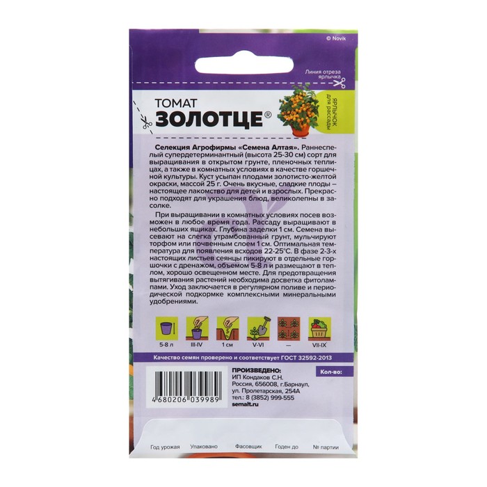Семена томат «Золотце», детерминантный, низкорослый, 0.05 г