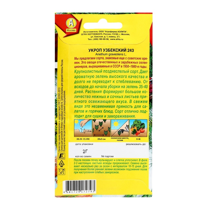Семена Укроп "Узбекский 243", ц/п, 2 г