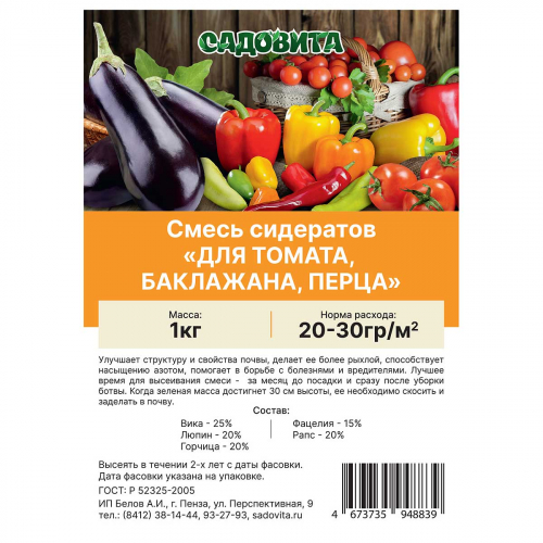 Смесь сидератов для томата, баклажана, перца 0,5кг САДОВИТА (30/1500)