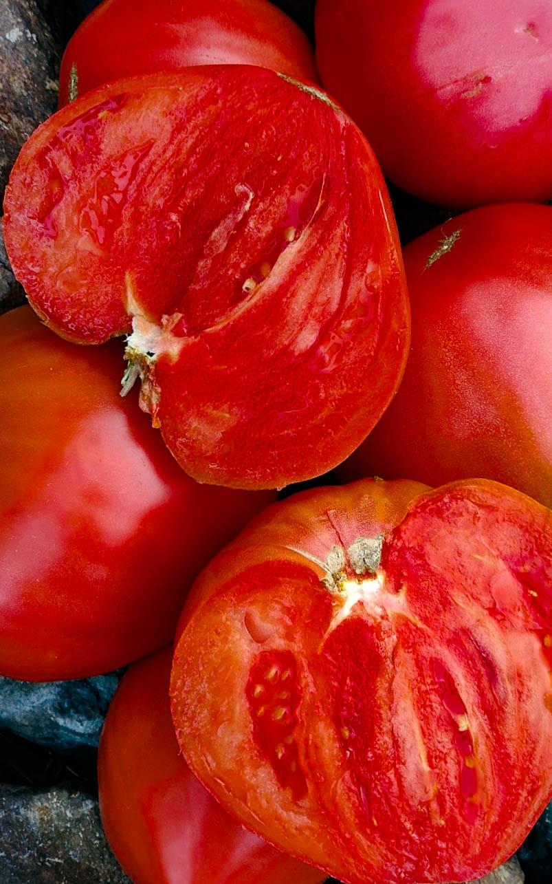 Индет, высокий, среднеспелый. Плоды сердцевидные, малиновые, с нежнейшей кожицей, от 200 до 500 гр, некоторые плоды могут быть до 800 гр. Плоды вкуснейшие, сладкие, ароматные. С каждой последующей кистью плоды становятся всё крупнее и крупнее.