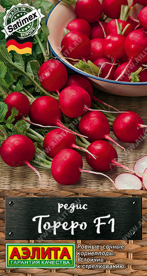Один из лучших скороспелых гибридов от немецкой компании Satimex для получения дружного урожая свежего, сочного редиса. Подходит для пленочных укрытий и открытого грунта. Первые корнеплоды готовы к дегустации спустя 14-16 дней после появления всходов. Растения компактные, с прямостоячей розеткой листьев, не склонные к раннему стрелкованию. Редис округлый, среднего размера, массой более 20 г. Вкус сладковато-острый, мякоть – плотная, без пустот и долго не дряблеет. Урожайность гибрида – около 2-2,5 кг/м2.